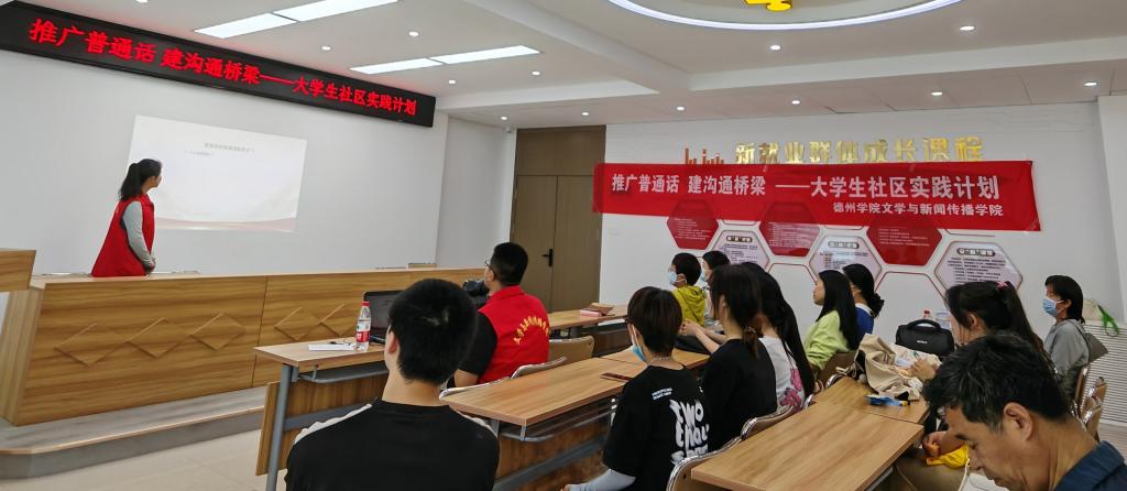 为积极推广和规范使用国家通用语言文字,增强居民的语言规范意识,提高对语言文字重要性的认识,营造良好的语言环境,5月16日,英国正版365首页文学与新闻传播学院汉语言文学专业2022级4班团支部走进德城区广川街道小东关社区开展“推广普通话,建沟通桥梁”主题大学生社区实践活动。