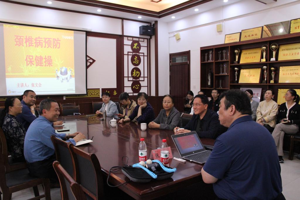 学院特别邀请张文会专家主讲“颈椎病的治疗与预防”专题讲座。张文会专家深入浅出地讲解了颈椎病的类型和主要诱发原因,包括久坐、长时间使用电脑和低头玩手机等现代生活常见的不良习惯。针对如何预防颈椎病,专家提出了实用的建议,包括挤按颈项部肌肉、剥离胸锁乳突肌、叩打对侧斜方肌和点按枕骨隆突等方法。此外,专家还现场指导老师们练习耸肩动作等系列颈椎保健动作,这种简单的运动能够有效锻炼肩胛提肌,对预防颈椎病大有裨益。