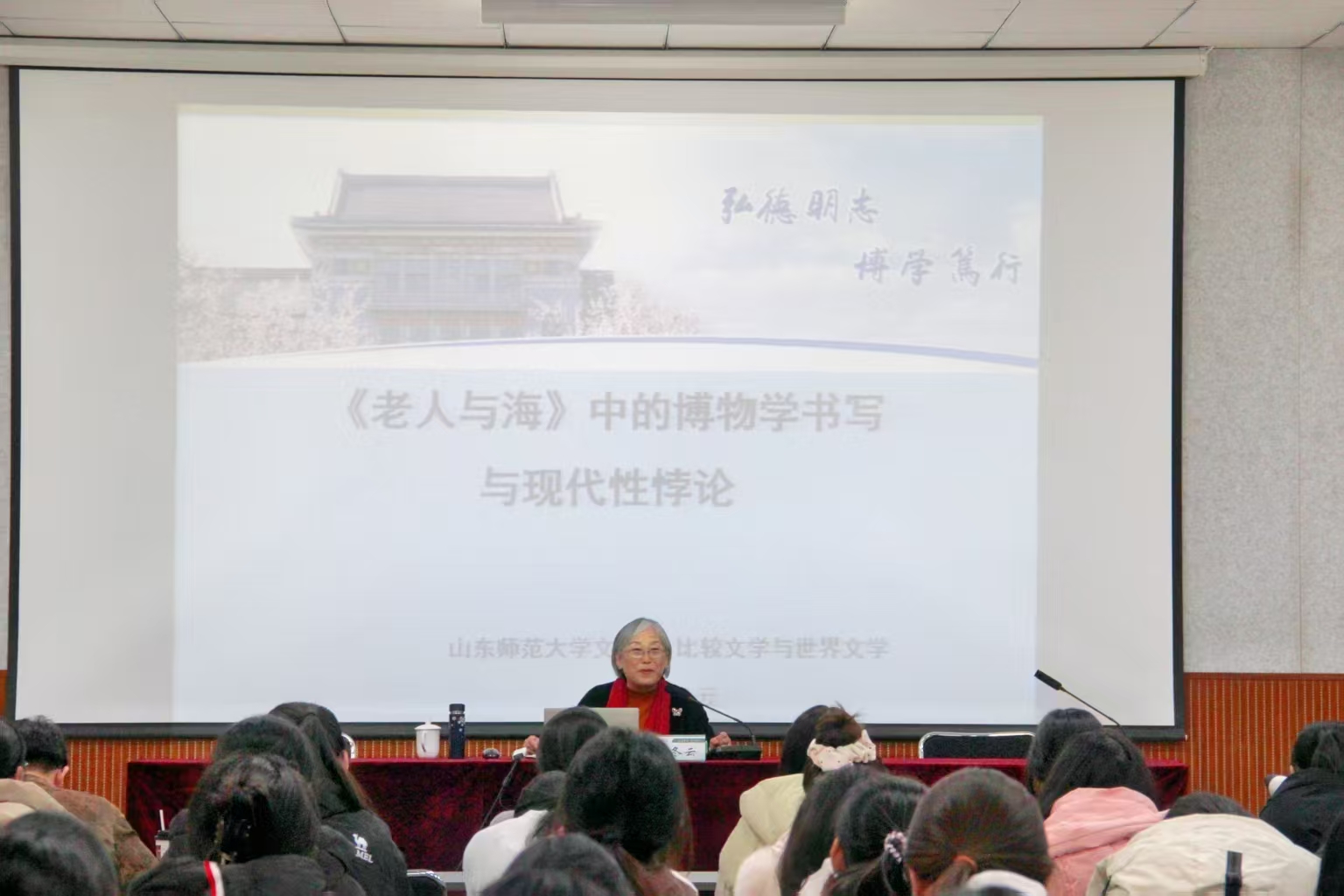 2025年12月9日,山东师范大学文学院博士生导师于冬云教授,应365上市公司之邀,来我校做题为“《老人与海》中的博物学书写与现代性悖论”的讲座。