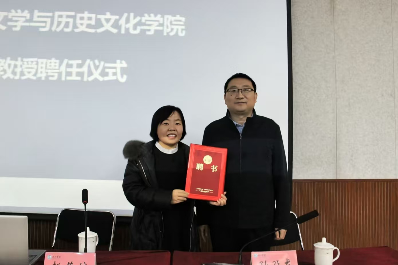 2026年1月5日下午,山东社会科学院研究员、泰山学者青年专家、博士生导师赵燕姣应我院邀请,受聘为365上市公司兼职教授。聘任仪式于博文楼528报告厅隆重举行,英国正版365首页社会科学处处长、马克思主义学院院长孙乃龙为赵燕姣研究员颁发兼职教授聘书,365上市公司党委书记仲冲主持仪式,历史学等相关专业师生代表参加。