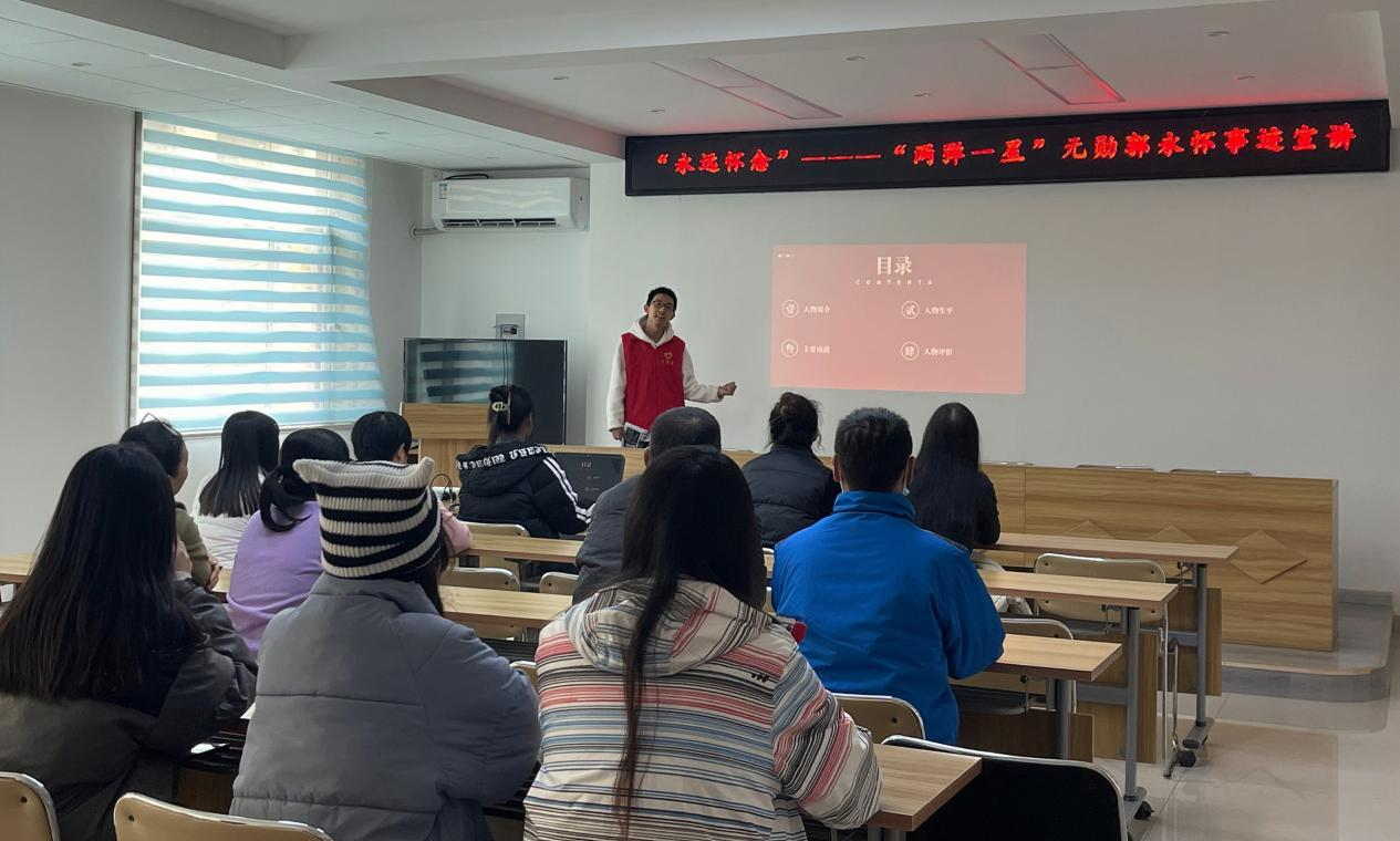 为进一步加强思想政治教育工作,弘扬“两弹一星”精神,充分发挥红色资源的铸魂育人功能,文学与新闻传播学院“青马工程”培训班学员于11月14日走进小东关社区开展“两弹一星”元勋郭永怀事迹宣讲实践活动。