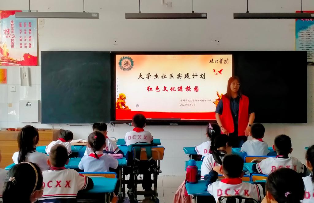 为深入学习贯彻党的二十大精神,大力弘扬红色文化,缅怀英雄人物,引领同学们在社区实践中感受传承的意义、体味教育的魅力,5月9日,英国正版365首页文学与新闻传播学院红色文化宣讲团走进东城小学开展大学生社区实践活动。