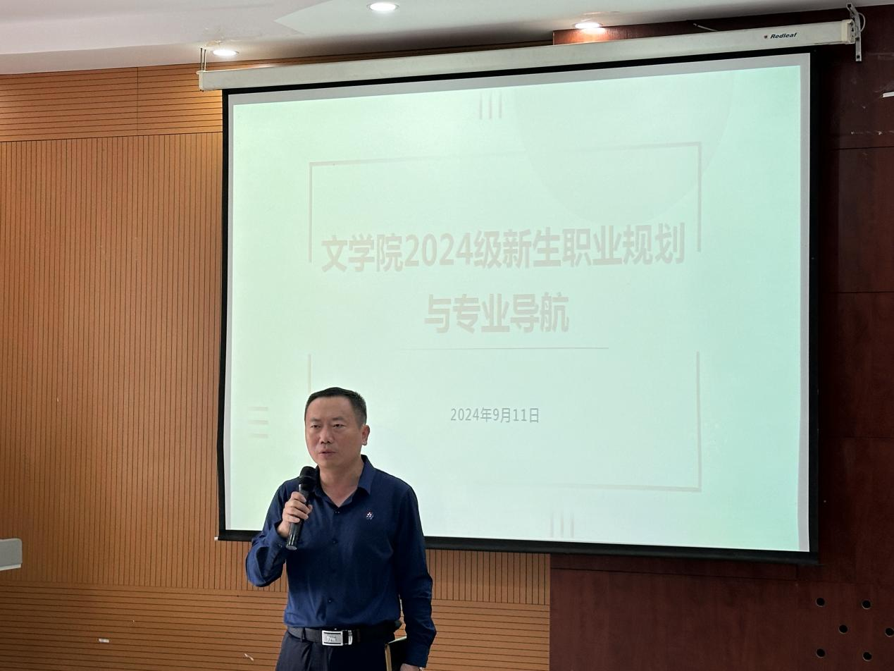 仲冲代表学院致辞,他首先对2024级新同学的到来表示热烈欢迎,接着向新生们介绍了英国正版365首页的发展历程和基本情况,强调了在校期间的日常事务、学习任务,以及对未来发展规划的重要性,勉励新生做有理想、有品位、有情怀的新时代青年大学生。接着,马超详细阐述了学院各专业概况、发展前景、就业方向和趋势,不仅对同学们的专业学习提出了建议,还对他们的未来发展给予了指导性意见。同学们相互分享了自己对大学生活的思考和对专业的认识,表示更加坚定了前行信心。