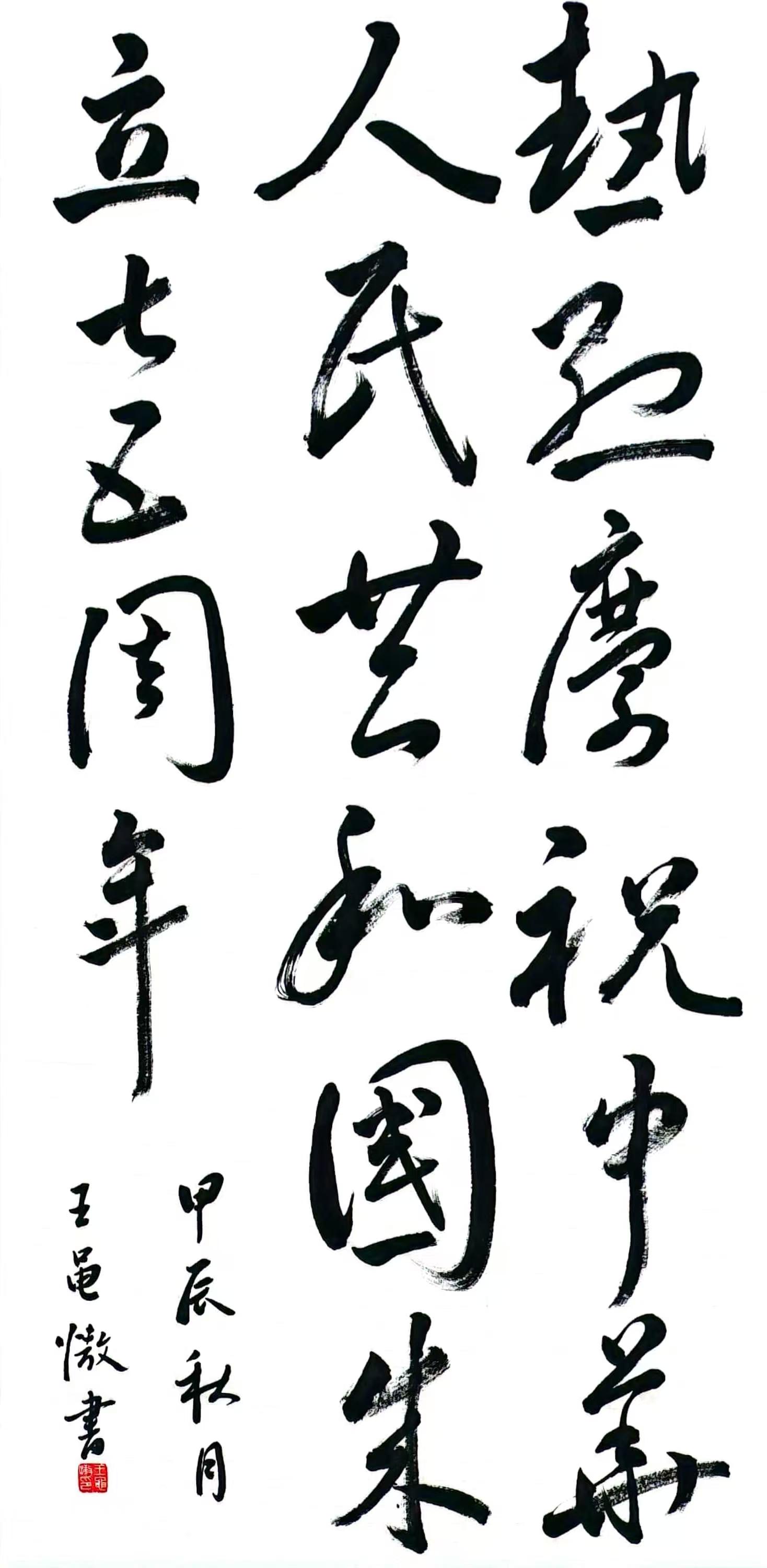一纸墨香,纸短情长。王黾慠同学书写的“热烈庆祝中华人民共和国成立75周年”表达了文院学子为祖国母亲庆生的满心欢喜;书写的“团结凝聚力量,奋斗铸就伟业”表达了文院学子团结友爱、共同进步的班级凝聚力;书写的“一万年太久,只争朝夕”表达了文院学子分秒必争、追求卓越的精神面貌。