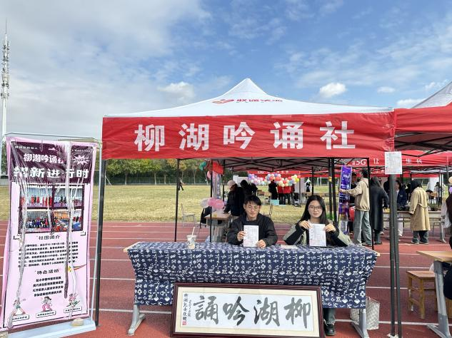 活动现场,每个社团各展所长,展示自己的特色与魅力。鉴塘诗社开展了诗词接龙和答非所问游戏,游戏规则简单而不失温馨,让大家在欢声笑语中感受诗词的魅力,散发着浓郁的文化气息;摄影摄像协会设置了现场体验区,在协会成员的指导下,一起学习如何调整焦距、曝光等参数,捕捉美好的瞬间,这种互动式的体验让同学们对摄影有了更具体的认识;柳湖吟诵社播放着抑扬顿挫、饱含情感的吟诵音频,社团的成员们积极宣传吟诵的历史渊源和技巧,带领大家现场吟诵,仿佛带着同学们穿越时空,领略到传统文化的深厚韵味。