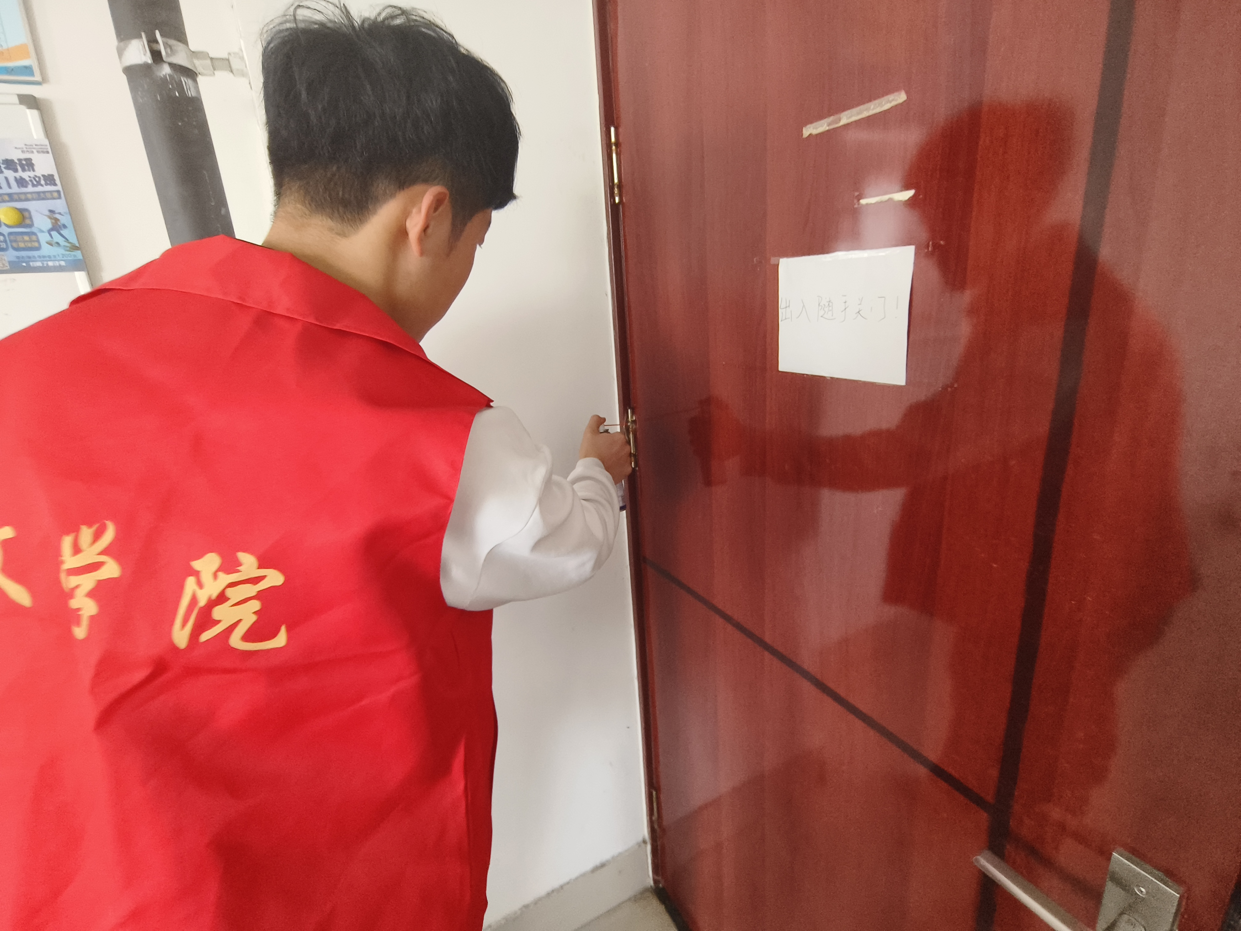 志愿者团队针对考研学生反映的考研教室开关门时发出噪音的问题,为教室门涂上了润滑油,使门部件变得更加顺滑,有效降低了关门时发出的刺耳声音。此外,志愿者们还为教室内的桌椅粘贴上了静音防滑垫,减轻了拉动桌椅时产生的声音,为考研学子提供了一个更加安静的学习环境。这些举措不仅有利于帮助考研学子提升学习的专注度,提高学习效率,也能够缓解考研学子的心理压力,让他们在学习之余能够更好地放松身心,以更加积极的心态面对备考过程中的困难与挑战。