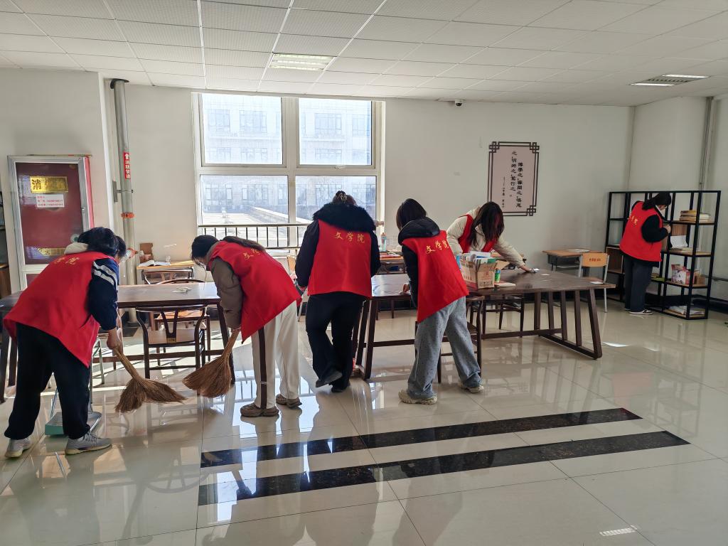 活动当日,志愿者们早早集合,带着扫帚、拖把、清洁剂等工具,满怀热忱地集合在考研大厅。有的志愿者手持扫帚仔细清扫地面,从大厅的一端逐步推进,不放过任何纸屑和杂物;有的用浸湿的拖把反复擦拭地面,让地面恢复光亮;还有的专注清洁门窗和桌椅,用抹布精心擦拭每一处污渍;志愿者们在清扫时,还贴心地为考研学子整理了桌面的书籍和资料,轻轻摆放整齐,同时在桌上留下鼓励的小纸条,为备考的同学加油打气。一位志愿者表示:“考研之路充满艰辛,希望通过我们的行动,给学长学姐们送上一份温暖,让他们更安心地备考。”经过几个小时的辛勤劳动,考研大厅旧貌换新颜。整洁的环境不仅为考研学子提供了更好的学习环境,也让他们感受到了来自学校与同学们的关怀。