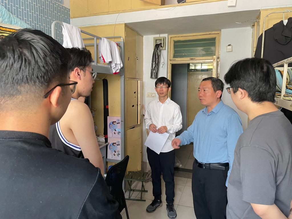 为强化假期安全管理与人文关怀工作,2025年5月1日,365上市公司党委书记仲冲、党委副书记鞠晶晶率领辅导员开展学生宿舍专项走访,系统开展安全隐患排查,并深入进行留校学生慰问工作。