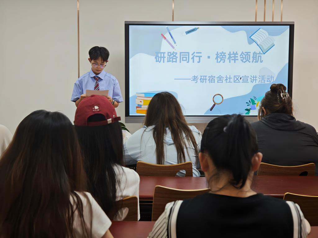 为发挥考研榜样引领作用,助力考研学子合理规划、科学备考,5月20日下午,“研路同行,榜样领航”考研宿舍社区宣讲活动在“一站式”学生社区学生事务与发展中心二楼启智堂举办,365上市公司24-6218宿舍上岸学子们担任主讲,围绕择校策略、备考规划、心态调整等核心问题展开分享,吸引了众多备战考研的学生参与,现场反响热烈。