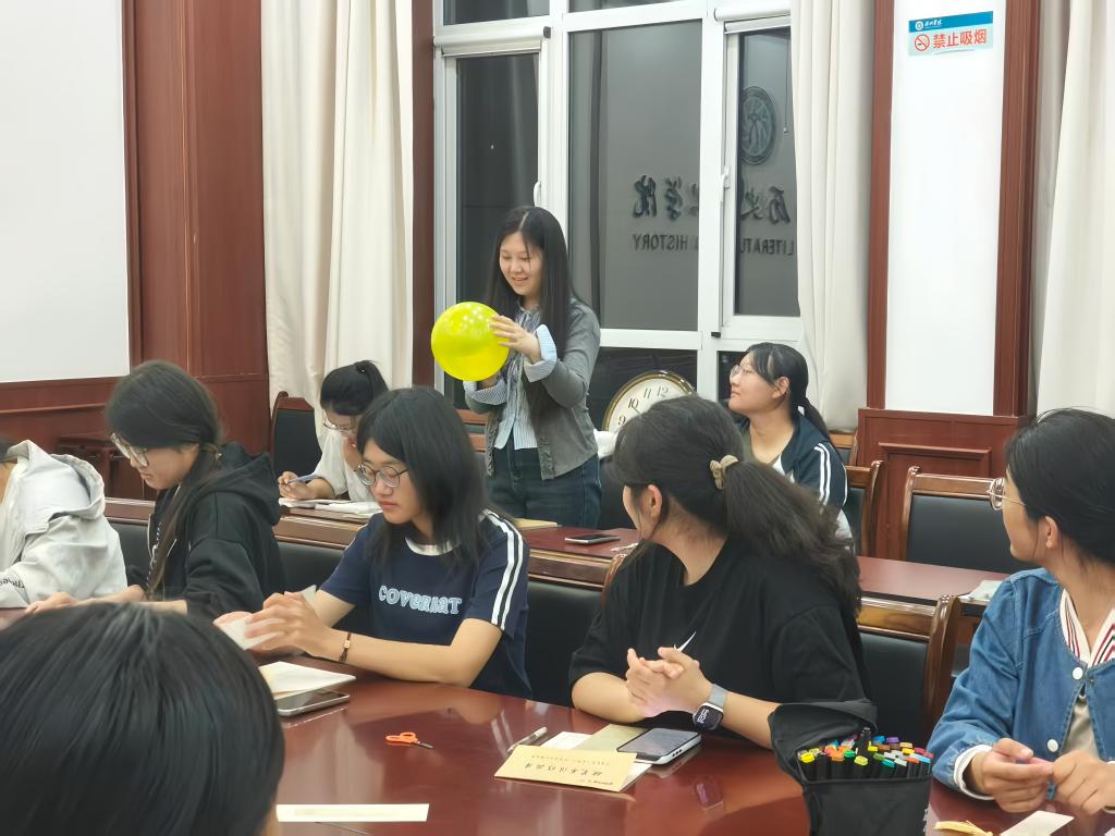 活动当天氛围轻松热烈。“气球传情,认识你我”环节中,同学们在气球上写下好奇的问题并传递;音乐停止时,拿到气球的同学回答问题并自我介绍,大家在互动中快速熟悉彼此。在“能量书签,绘就新篇”环节,大家用画笔在书签上创作励志话语或希望图案,再用流苏加以装饰,将对新学期的期待融入其中。创作完成后,同学们踊跃上台展示书签,分享灵感与“能量关键词”,心与心的距离在真诚交流中不断拉近。