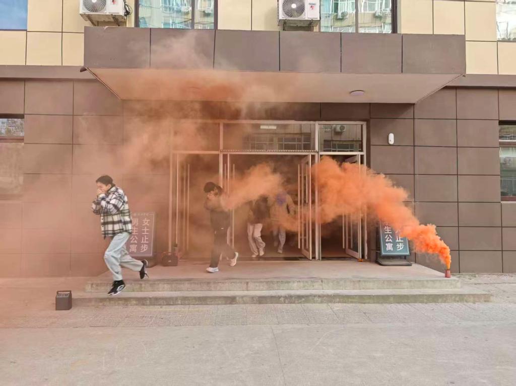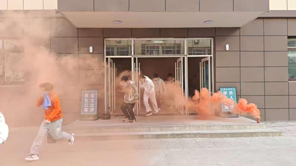 急促的火灾警报声响起,演练正式启动。本次演练模拟6号楼7号楼突发“火情”现场浓烟弥漫、火势迅速蔓延。参与演练的同学们立刻响应,取出湿毛巾捂住口鼻,遵照“弯腰、有序、小跑”指令,在老师带领下以宿舍为单位沿指定通道快速疏散。全体人员均安全撤离至指定集结区域,撤离过程秩序井然、高效规范,无慌乱推挤情况。学校保卫处负责老师结合演练全程复盘总结,肯定师生应急表现,明确后续完善细节。