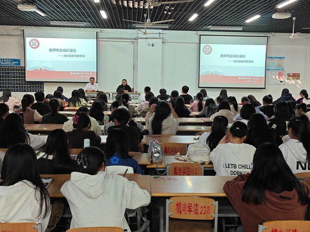 为了提升汉语言文学专业学生的职业素养和就业能力,增强学生在设计教学环节、把控教学节奏的能力,1031日下午,文学与新闻传播学院在博文楼528报告厅举办了“教师专业成长漫谈”讲座,文学院汉语言文学专业的转任教师、20222023级学生共300余人参加了此次讲座。