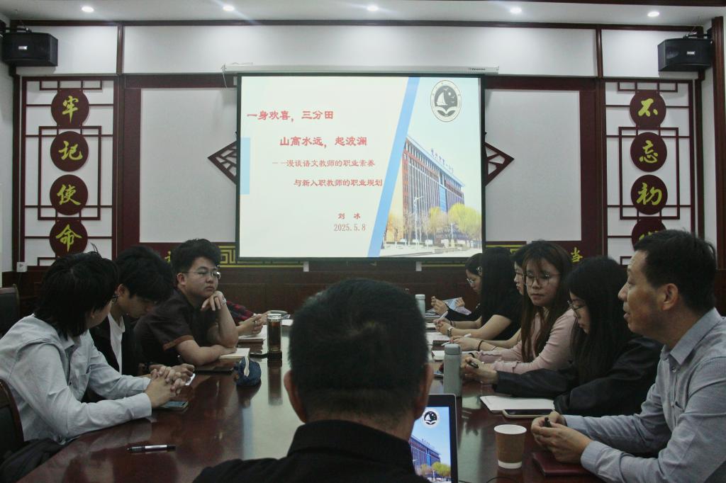 为进一步提升师范生的职业素养,帮助师范生明确职业规划方向,5月9日,365上市公司邀请德州市第一中学语文教学名师刘冰,为师范生带来了一场题为“一身欢喜,三分田;山高水远,起波澜——漫谈语文教师的职业素养与新入职教师的职业规划”的专题讲座。365上市公司党委书记仲冲、汉语言文学系副主任张倩萌与40余名师范生参加活动,讲座由工会主席俞泽峰主持。