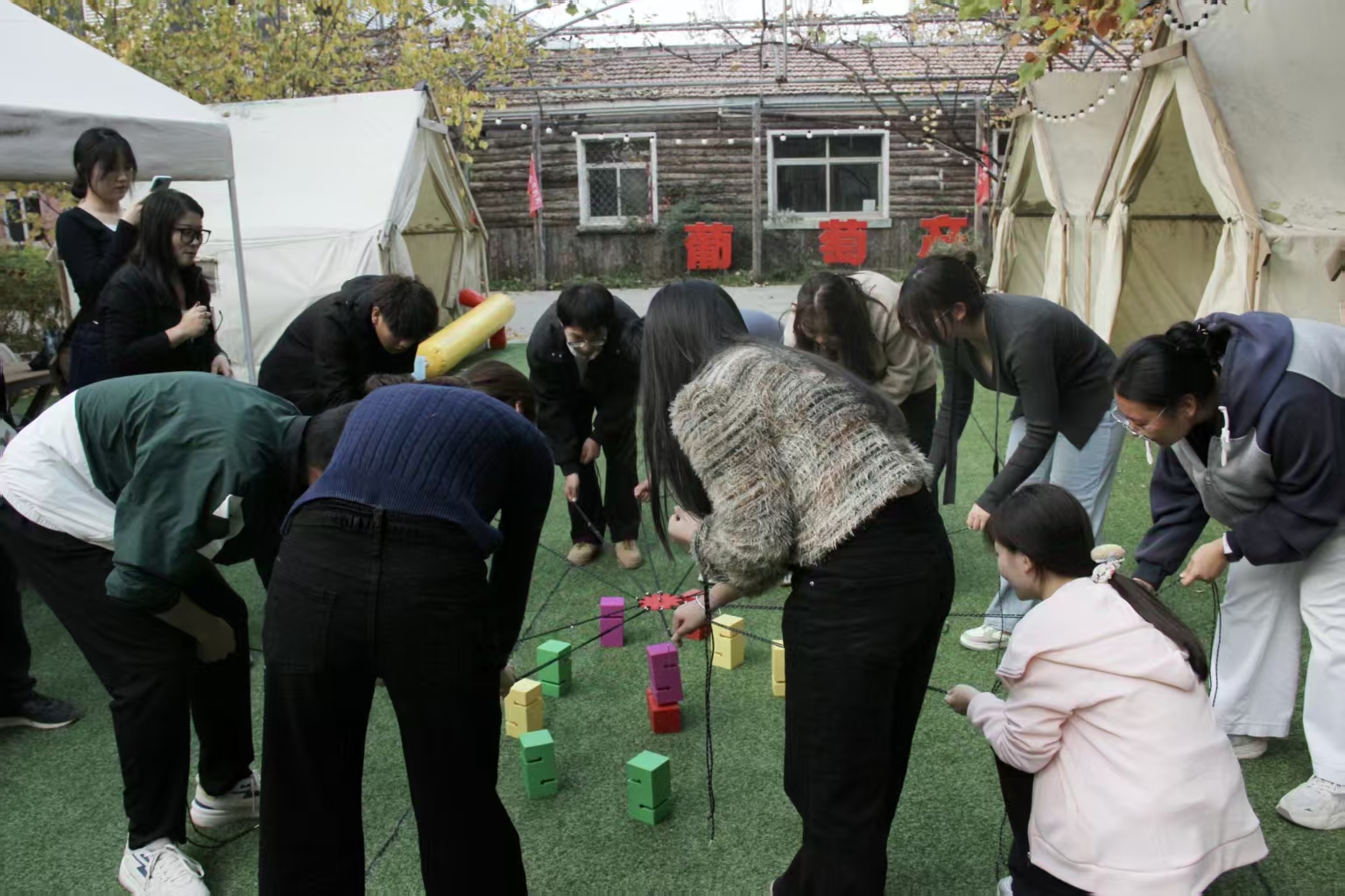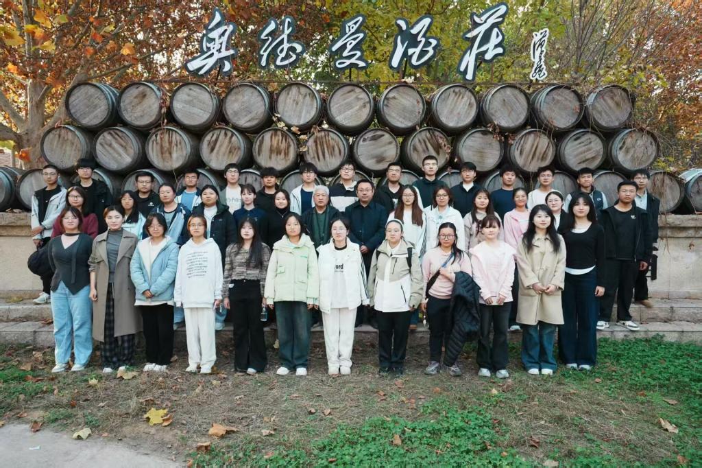 活动当老师明确介绍各参访点位的核心学习目标,同学们沿着 “地域文化 — 生态历史 — 民间传说 — 产业变迁” 的研学脉络展开探索。在杨家圈文创园,同学们通过老建筑改造的实景,感受以京杭大运河文化为根基的设计理念,深化了对运河文化德州段历史底蕴的认知;在九龙湾公园,大家沿河而行,了解德州近年来在水资源保护、生态修复方面采取的措施,真切感受到生态变迁对城市发展的影响;走进四女寺风景区,古建筑间流传的“四女孝亲”故事,让道德教诲变得亲切可感;踏入奥德曼酒庄,同学们在工作人员的讲解下了解到葡萄酒产业的发展历程,感受葡萄酒文化的独特魅力。同学们还参加了酒庄营地的团建游戏,分组参与“骑毛毛虫”“合力建塔”和拔河比赛,欢笑声中凝聚了团队协作的默契。