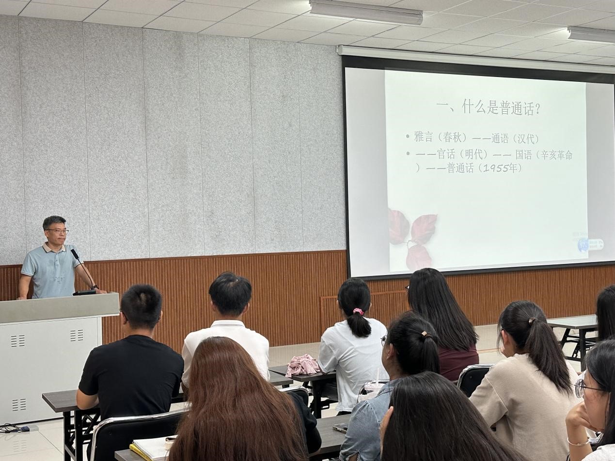 李连伟副教授以其深厚的学术功底和生动的个人经历,为在场师生呈现了一场别开生面的讲座。他先回溯了自己与普通话结缘的历程,通过分享自己在学习普通话过程中的点滴故事,深刻阐述了推广普通话对于促进国家统一、民族团结以及社会和谐发展的关键作用。李教授指出,语言障碍往往成为沟通中的“隐形墙”,而普通话作为国家的通用语言,推普可以有效打破地域隔阂,促进文化交流互鉴。李连伟副教授还巧妙地穿插了几个因方言差异引发的幽默小故事,这些生动有趣的案例不仅让现场气氛更加活跃,也让同学们在欢笑中深刻体会到了方言与普通话之间的辩证关系以及推广普通话的必要性。他强调,方言和民族语言是宝贵的文化遗产,值得我们去保护和传承,但在全球化与信息化的今天,普通话的推广更是不可或缺。保护不等于排斥,而是要在尊重多样性的基础上,实现更广泛、更有效的沟通与交流。同学们纷纷表示,通过李连伟副教授的讲解,他们更加深刻地认识到了普通话作为国家通用语言的重要意义,也更加坚定了自己学习并推广普通话的决心。