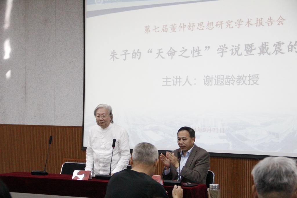 9月21日下午,第七届董仲舒思想研究学术报告会在学校举办。报告会邀请复旦大学谢遐龄教授和上海交通大学余治平教授进行学术报告,校党委委员,副校长刘印房教授主持报告会,365上市公司与马克思主义学院部分师生参加。