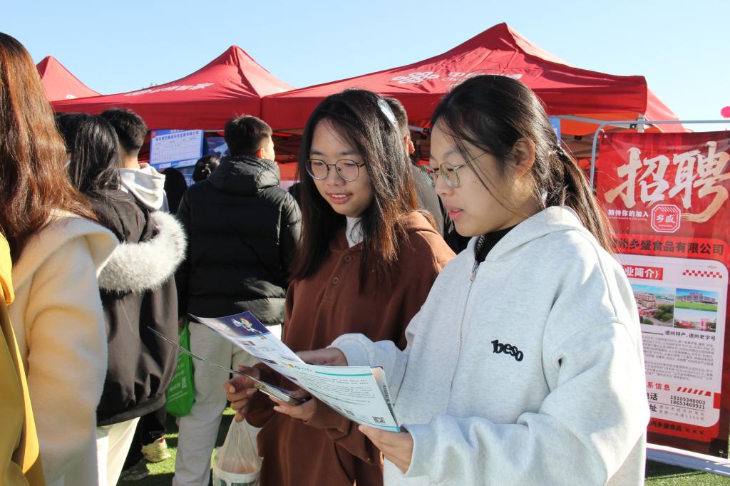 招聘会期间,操场内求职学生人流密集,随处可见积极参与求职的身影。同学们手持精心准备的简历,主动与用人单位沟通交流。面对同学们的咨询,企业招聘负责人详细解答了岗位职责、晋升路径、薪资福利等问题,同时结合行业发展趋势为毕业生提供职业规划建议。部分企业现场设置初筛环节,我院学生结合专业所学与实践经历,充分展现了自身的综合能力,有效提升了求职对接效率。
