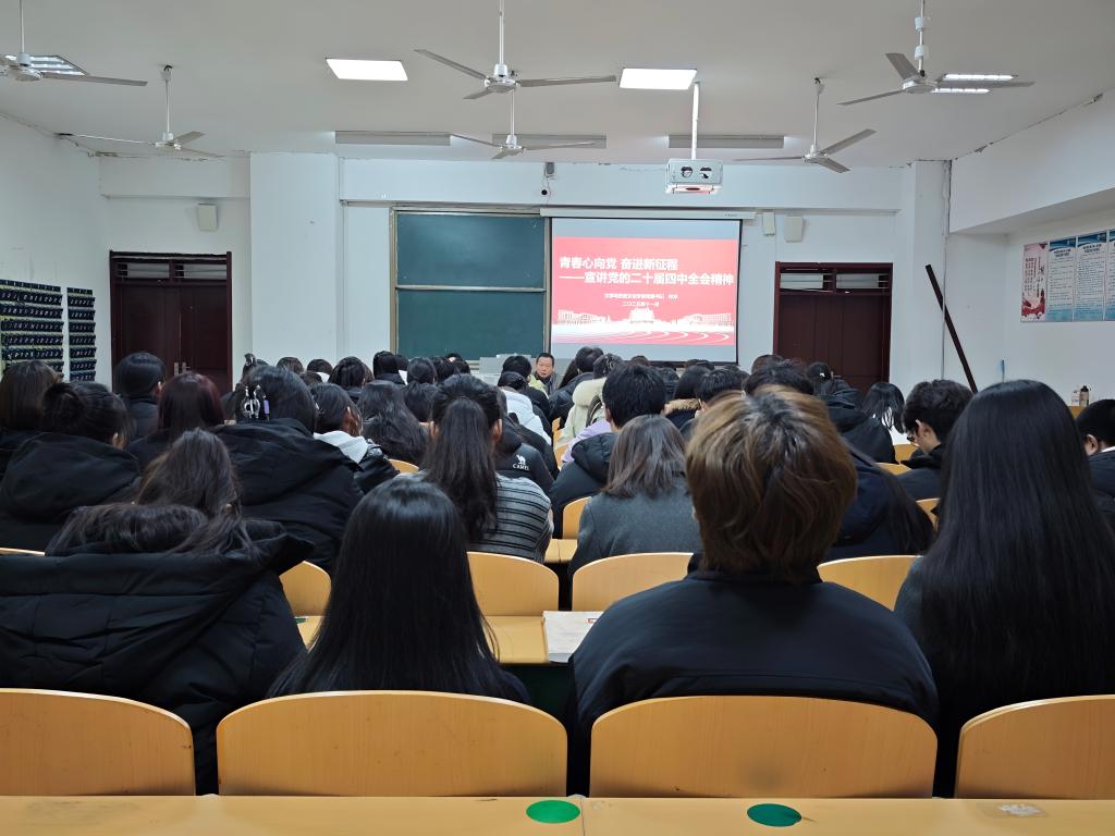为深入学习贯彻党的二十届四中全会精神,引导青年学生坚定理想信念、强化使命担当,11月18日,365上市公司举办“青春心向党 奋进新征程”宣讲党的二十届四中全会精神主题党课。本次党课由学院党委书记仲冲主讲,学院部分教职工、学生党员、学生骨干、学生入党积极分子参加。